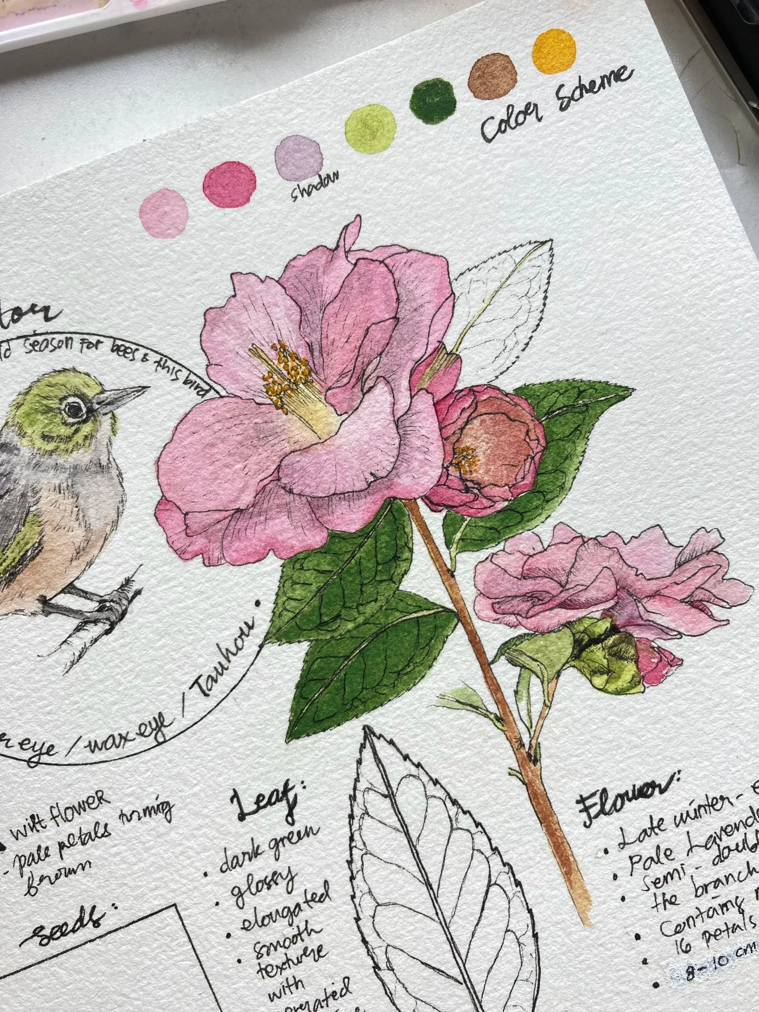 Living so close to nature here has changed the way I see the world. I’m especially inspired by the individuality of every flower; the subtle curves of petals, unexpected color harmonies, and the important roles native plants play in maintaining balance within the ecosystem. Artists like Dianne Sutherland and Giacomina Ferrillo have deeply influenced my appreciation for careful study and thoughtful storytelling through art. I’m also grateful to be a full member of the Botanical Art Society of New Zealand (BASNZ), which continues to inspire and nurture my journey.